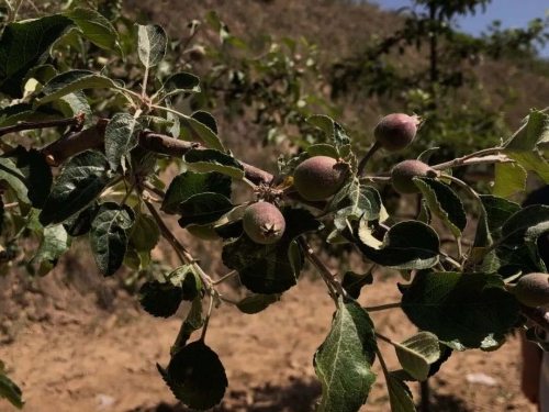 石山村秋树畔组的农民李建义看着刚刚被区技术员疏到地上的苹果幼果,眼眶瞬间就红了!