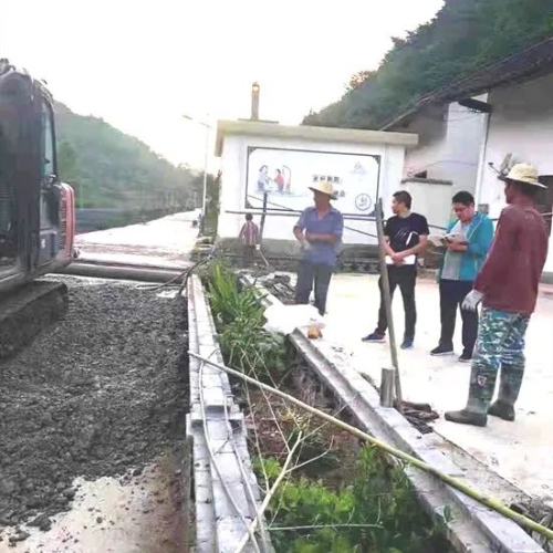 周红涛(右二)检查村庄修路情况